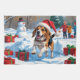A heartwarming holiday illustration featuring a cheerful dog playing in the snow, wearing a Santa hat and surrounded by colorful gift boxes. In the background, children build a snowman beside a snow-covered Christmas tree, creating a joyful winter wonderland. Perfect for spreading holiday cheer and capturing the magic of Christmas.
