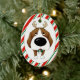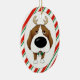 Humorous big nose Beagle Christmas ornament. Beagle is in antlers and holding mistletoe in his mouth.