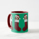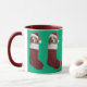 A cute Christmas mug featuring a Beagle wearing a Santa hat sticking out of a Christmas stocking.