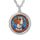 Beagle Dog in Vibrant Stained Glass Art Silver Plated Necklace