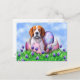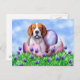 Celebrate Easter with this Beagle hatching from a colored egg with coordinating tulips growing all around.
