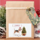 A cute beagle is humorous wearing a Christmas attire. Looking out next to a holiday tree, it left muddy paw prints. “Paws” and send funny holiday Christmas gift.
