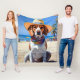 Beagle on Beach, summer gift for dog lovers Fleece Blanket