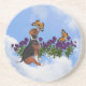 Cute beagle puppy with butterflies and purple violets animal sandstone coaster. Click on Customize to add your text. Contact me through Send Message on my homepage with any questions or requests. Please visit Smilin' Eyes Treasures to see more animal, flower, and nature cards and gifts for home and office.