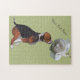Beagle Puppy Smelling White Rose Personalized Jigsaw Puzzle