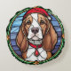 Beagle Stained Glass Christmas Round Pillow