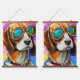 Beagle Wearing Sunglasses over colorful rainbow colors.