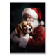Beagle With Santa Claus Festive Christmas Table Number