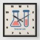 A clock with a cute drawing of a test tube and beaker. Perfect for science lovers.