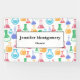 Business banner with a fun and colorful pattern. Research scientist vibe with beakers and flasks of different shapes and sizes in bright happy colors.