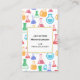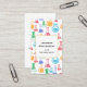 Business cards with a fun and colorful pattern. Research scientist vibe with beakers and flasks of different shapes and sizes in bright happy colors.