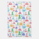 Kitchen towel with a fun and colorful pattern. Research scientist vibe with beakers and flasks of different shapes and sizes in bright happy colors.