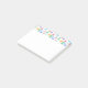 Sticky notes with a fun and colorful pattern. Research scientist vibe with beakers and flasks of different shapes and sizes in bright happy colors.