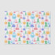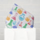 Patterned tissue paper with a fun and colorful pattern. Research scientist vibe with beakers and flasks of different shapes and sizes in bright happy colors.
