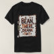 Playful typography T-shirt with the phrase “Bean There, Drank That” bordered by coffee beans. A witty and stylish design for true coffee lovers.
