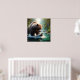 A painting showcasing a bear and a fish gracefully intertwined in a river. The bear is reaching out towards the fish as it elegantly swims against the current, creating a harmonious and captivating scene.