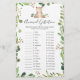 Bear themed baby shower animal gestation game card features a watercolor bear illustration and watercolor greenery eucalyptus garland and elegant handwritten style font.