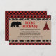 Bear baby shower buffalo plaid kraft book request enclosure card