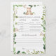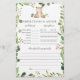 Bear themed baby shower predictions and advice game card features a watercolor bear illustration and watercolor greenery eucalyptus garland and elegant handwritten style font.