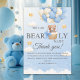 Thank your guests with this adorable bear baby shower thank you card. Featuring a sweet teddy bear floating among clouds and soft blue colors, it’s a heartfelt way to show appreciation after your baby shower.