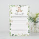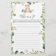 Bear themed baby shower who am I game card features a watercolor deer illustration and watercolor greenery eucalyptus garland and elegant handwritten style font.