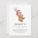 Bear Balloon Santa Hat First Birthday Photo Invitation
