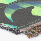 A quality printed throw has its advantages. This is a much finer weave throw than its loopier cousins, and though lighter, it is worth the investment for custom room accessorizing. The back is much prettier than the typical brown, and the fringe on the long sides very vivid, the selvage nicely done. Before photographing, I washed the throw in cold water, delicate, with a thicker woven throw the same size. On tumble dry low, this throw was dry in half the time as the other. This is a very practical quality if you use throws for furniture covers or to wrap up in frequently. The sleekness of the fabric makes it a great layer for accenting or protecting without the feeling of sitting on too much stuff. Perfect for napping or when you feel a light chill coming on. The color printing is beautiful and on this fabric, matched the design and color of my Photoshop image. This is an advantage for blending room fabrics and colors. The fringe on the short sides prints the colors from the design image and therefore varies from the side fringe. I streaked a white fractal line through the plaid pattern to give the illusion of weaving. This printed as crisp as an illusory thread, and put some white in the short side fringe, showing another advantage of print vs loomed- for artistic purposes, line lines, detail, and color integrity can be planned and preserved. My loomed throws have color limitations and more of a needlepoint texture. Print throws reproduce an exact image. The throw felt a little stiff straight out of the package, but this went away in the first delicate wash. Of course I searched the wash water for ink or bleeding and there was none.