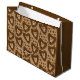 A cute gift bag with the pattern of a beige bear cub face inside faux stitched brown hearts . Ideal for baby showers , toddler's birthday or Valentine's Day .