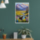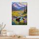 Bear Cub Snow Mountain Meadow Wildflowers Painting Poster