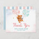 Bear Gender Reveal Pink and Blue Balloon Thank You Card