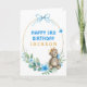 Cute baby bear with golden crown and blue bow on a gold glittering frame and blue watercolor flowers