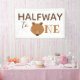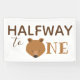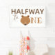 A half birthday banner for your baby. Celebrate your baby’s first six months with this cute banner. It has a white and brown color scheme with the word "One" including a bear face illustration as the first letter of the word. Simply add this banner to your cart, and happy half birthday to your wonderful baby!