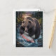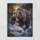 bear is depicted holding a shimmering fish in its paws, capturing a moment of natures raw beauty and strength.