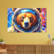 This striking artwork by Otis Porritt presents a bear in an astronaut helmet, its gaze direct and captivating. The animal's fur is rendered with a rich tapestry of textured strokes in warm oranges, yellows, and browns, creating a vibrant, almost impasto effect. Cool blues and purples define the snout, contrasting with the fiery tones of the fur. The reflective visor of the helmet frames the bear's face, while the background swirls with dynamic strokes of teal and deep blue, evoking a cosmic expanse. The digital medium masterfully captures a painterly aesthetic.