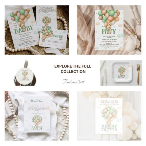 Float into a world of whimsy and wonder with our Teddy Bear Green Hot Air Balloon Baby Shower thank you card! Set against a backdrop of dreamy skies, a cuddly teddy bear drifts in a charming hot air balloon, inviting your loved ones to celebrate the arrival of your little bundle of joy.