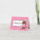 Our adorable custom baker note cards are perfect for children's thank you notes. Featuring a happy little bear wearing a chef's hat and pink plaid apron with cupcakes and cherries. Pink polka dotted background with cupcakes and cherries. Customize it with your own personal text. Little bear is moveable and resizable. Coordinated labels, party invitations, postage, T-shirts and gifts also available. PinkInkArt original!