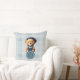 Create a special throw pillow for your home or nursery featuring blue colors, gingham, and a casual chic teddy bear. Part of the Bear Jean Baby design collection. Use the template to add your desired monogram.