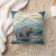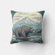 Bear, Mountains, Lake, Full Moon Ai Art Throw Pillow