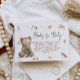 Watercolor vintage-style Boho nursery baby shower invite! Adorned with adorable illustrations of a sweet cute baby bear, lush plants, a cozy crib, and charming vintage toys. Don't forget to explore the full collection.