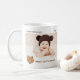 A photo baby’s first Christmas mug with a cute bear face illustration. Simply customize this mug with your baby’s name & photo & the year, add it to your cart, and enjoy it this holiday and beyond!