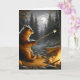 Brown bear roasting a marshmallow on a stick over ca campfire in the forest.