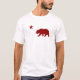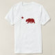 A maroon (dark red) silhouette of a grizzly bear and lone star against a dark T-shirt.