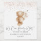 Baby shower wine and drink labels featuring the saying 'WE CAN BEARLY WAIT for baby to arrive!', rose gold confetti sprinkles, an illustration of a watercolor boho bear holding pampas grass, peach delicate flowers, gazing at a bumble bee. The font styles, size and color can be changed by clciking on the customize further link after personalizing.