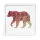 This design is the outline of a bear with a red or maroon to beige color gradient and the silhouette of a tree inside.