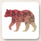 This design is the outline of a bear with a red or maroon to beige color gradient and the silhouette of a tree inside.