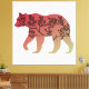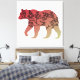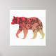 This design is the outline of a bear with a red or maroon to beige color gradient and the silhouette of a tree inside.