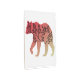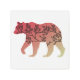 This design is the outline of a bear with a red or maroon to beige color gradient and the silhouette of a tree inside.