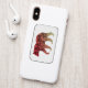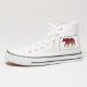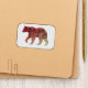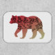 This design is the outline of a bear with a red or maroon to beige color gradient and the silhouette of a tree inside.