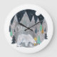 Bear winter mountains moon large clock