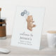 Bear with 3 Blue Balloons Welcome Sign